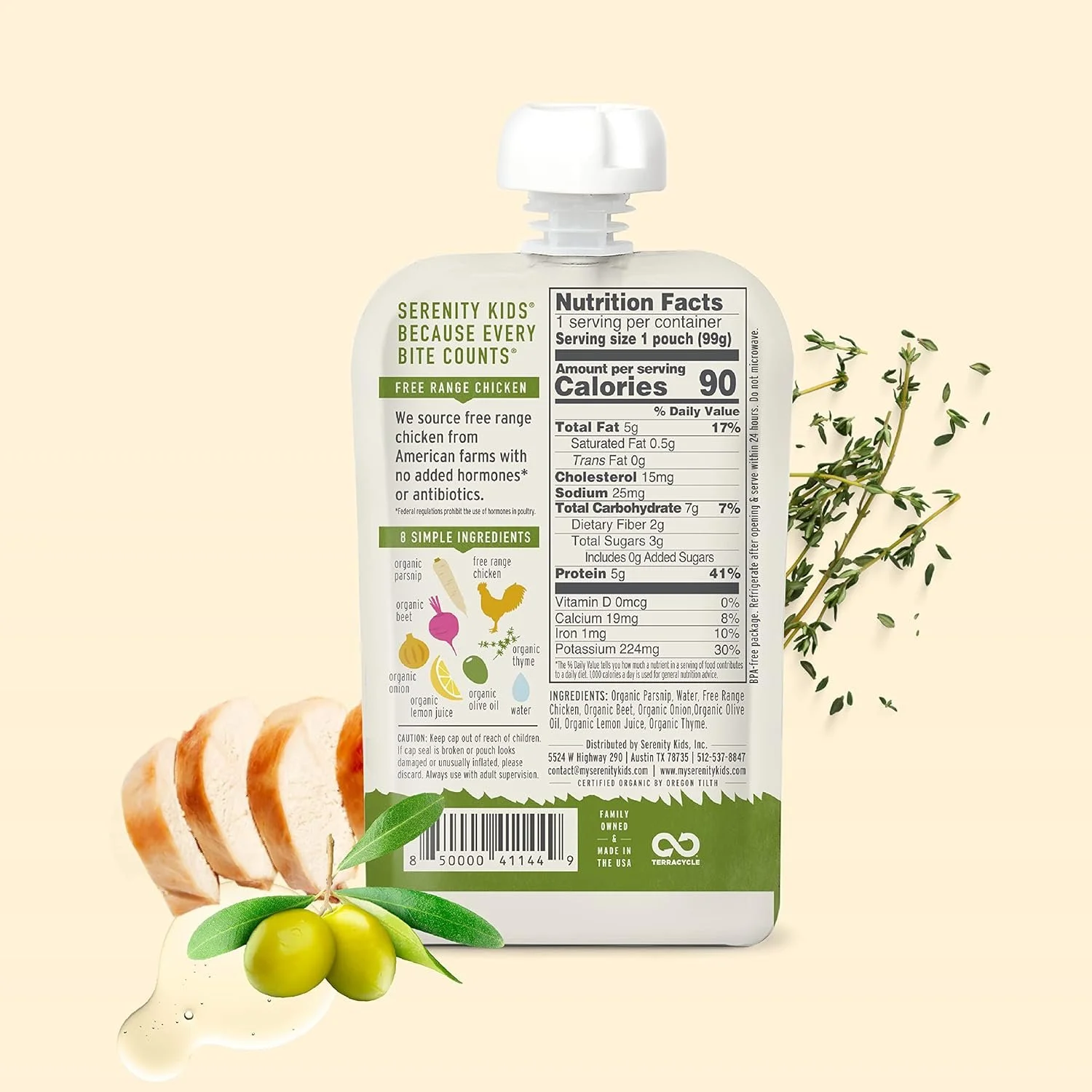 Serenity Kids Food Pouch Puree With Free Range Chicken & Thyme, 3.5 oz