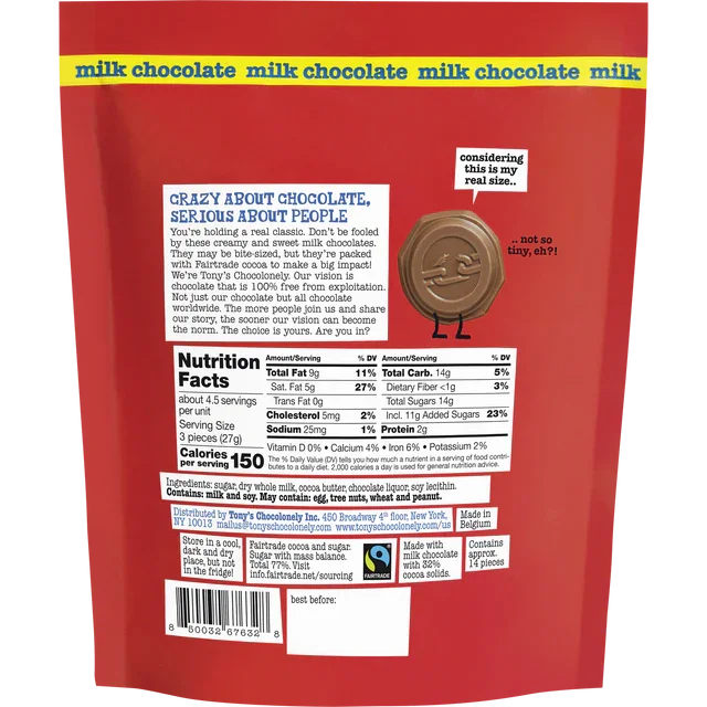 Tony’s Chocolonely, Milk Chocolate Tiny Tony’s Pouch, 4.44 oz