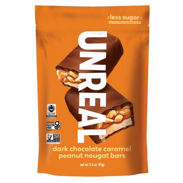 UNREAL, Dark Chocolate Caramel, Peanut Nougat Bars, 3.4 oz